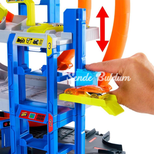 Hot Wheels City Mega Garaj oyun setinin her katında farklı bir eğlence sizi bekliyor.