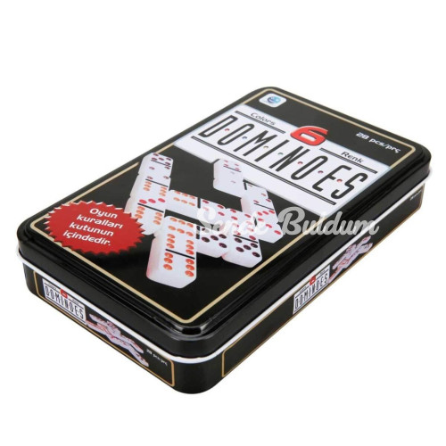 Metal kutu içerisinde; 6 renkten oluşan 28 adet domino taşı ve oyun kullanım kılavuzu yer almaktadır.